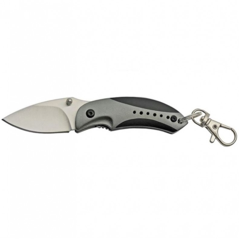 | RITE EDGE KEY RING KNIFE 3" (7.62cm) closed. 1.75" (4.45cm) satin finish 440 stainless blade. Black and gray aluminum handle. Attachment clip. Thumb stud. |
